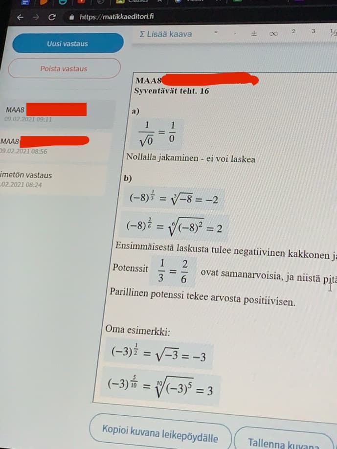 <Image src={["https://api.testausserveri.fi/v1/media/projects/sa7yy-mefiv2-1.jpeg", "https://api.testausserveri.fi/v1/media/projects/dp8mcg-mefiv2-2.jpeg"]} caption="Matikkaeditori.fi V2 kehityksessä vuonna nakki ja muusi. Oli teemoja ja kieliä." />