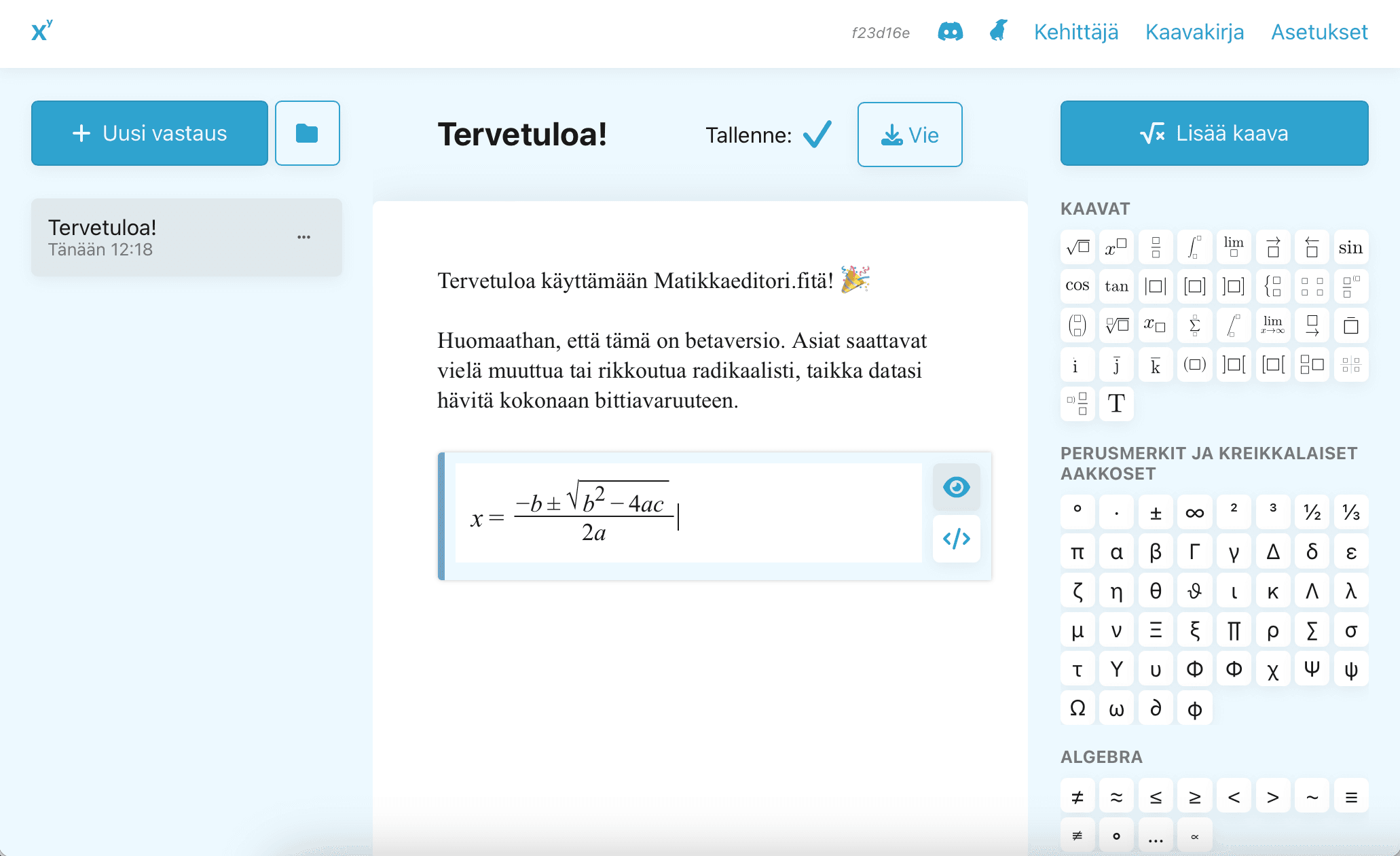 Matikkaeditori.fi -projektin lähdekoodi julkaistiin avoimeksi vuoden 2023 alussa.